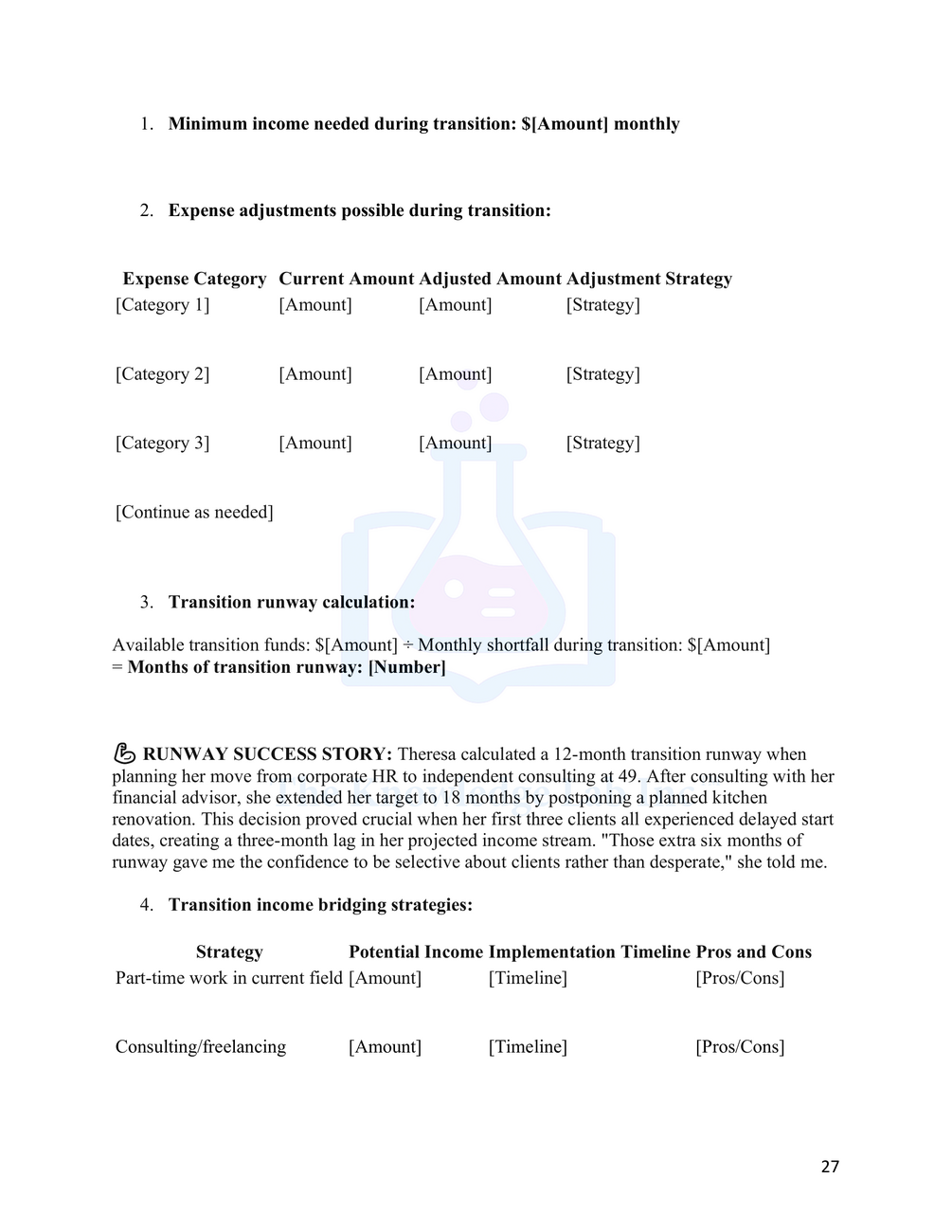 A fillable second-act planner—values & skills audit, positioning, runway calculator, and a focused 6-month plan.