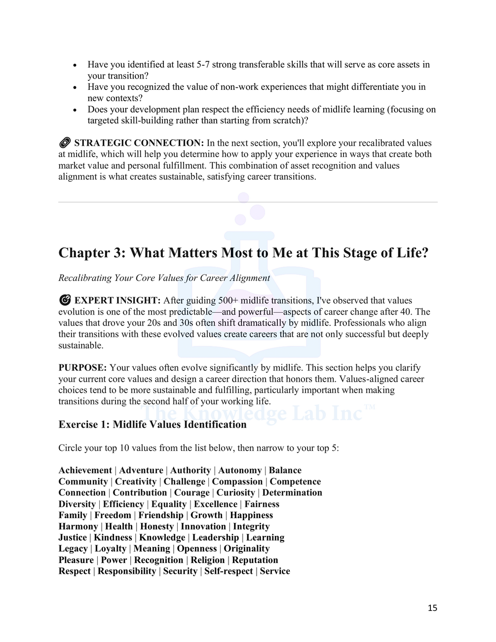 Your Second Act Success Workbook, Reinventing Your Career After Fourty — Values, Skills & Runway Planner (Interactive PDF)
